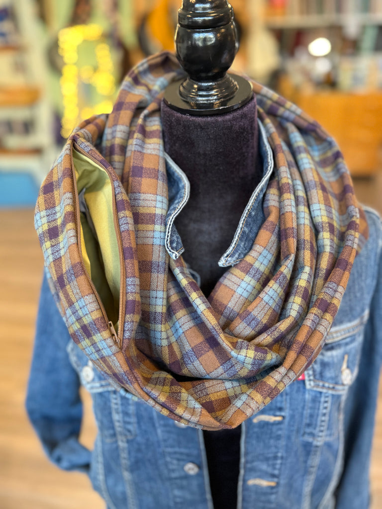 NEW - Autumn Blend Flannel Hidden Pocket Infinity Scarf
