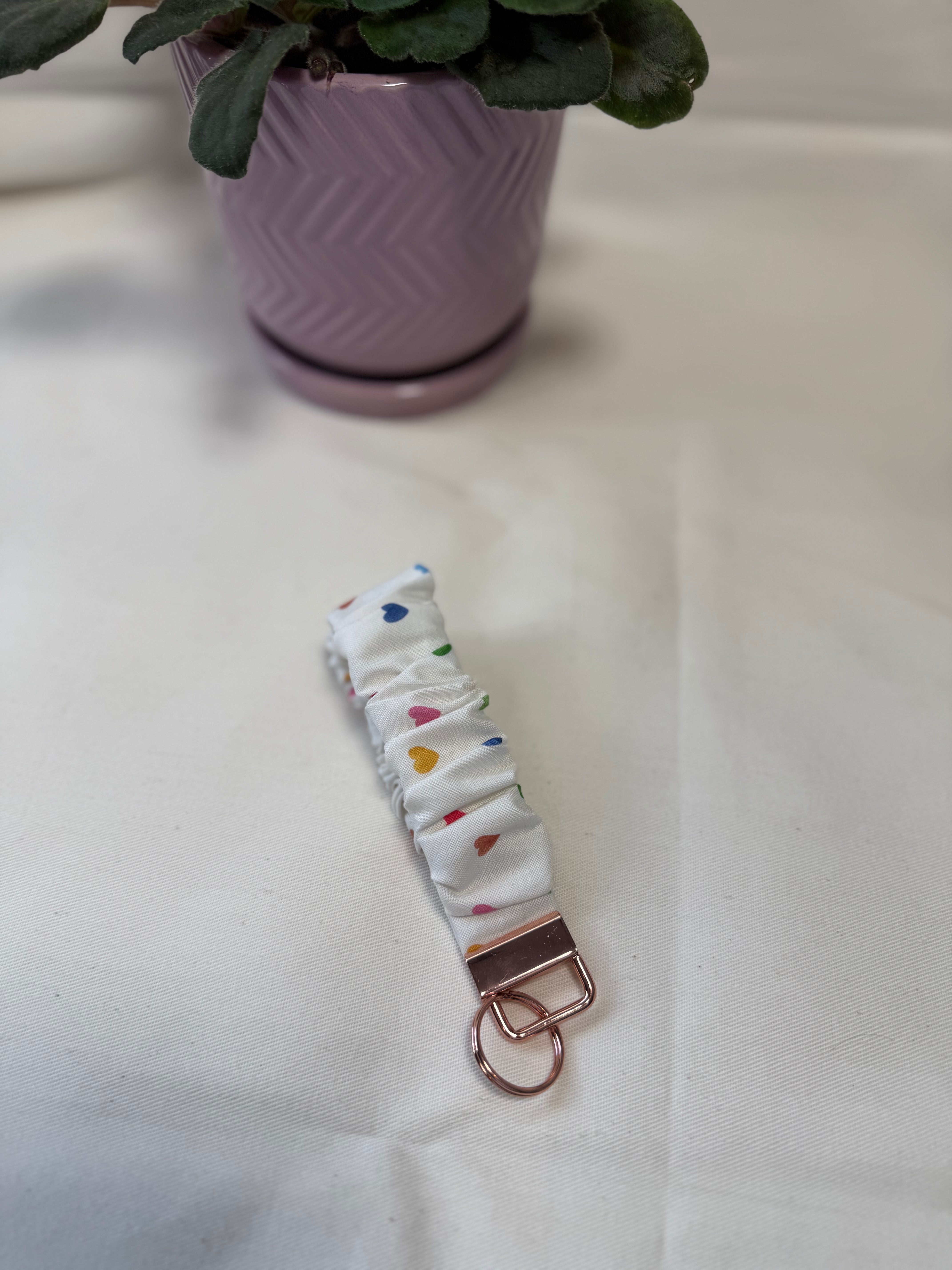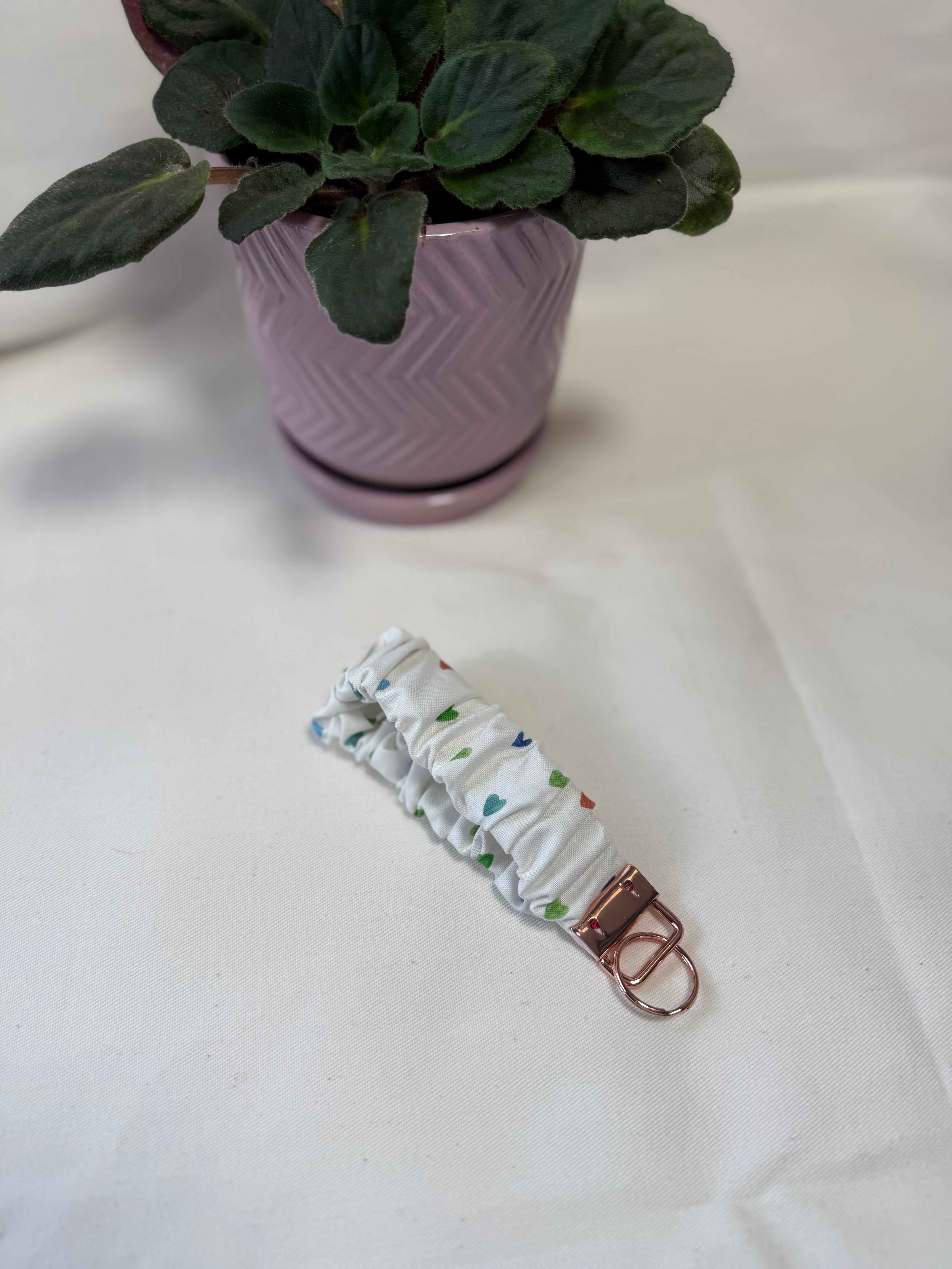 This kElevate your style with the Scrunchie Fob! This chic scrunchie features a key fob attachment, combining practicality and fashion effortlessly. Keep your keys secure while looking adorable. Its elasticized design ensures a comfortable fit on your wrist, making it the perfect accessory for any occasion. Embrace versatility and style!