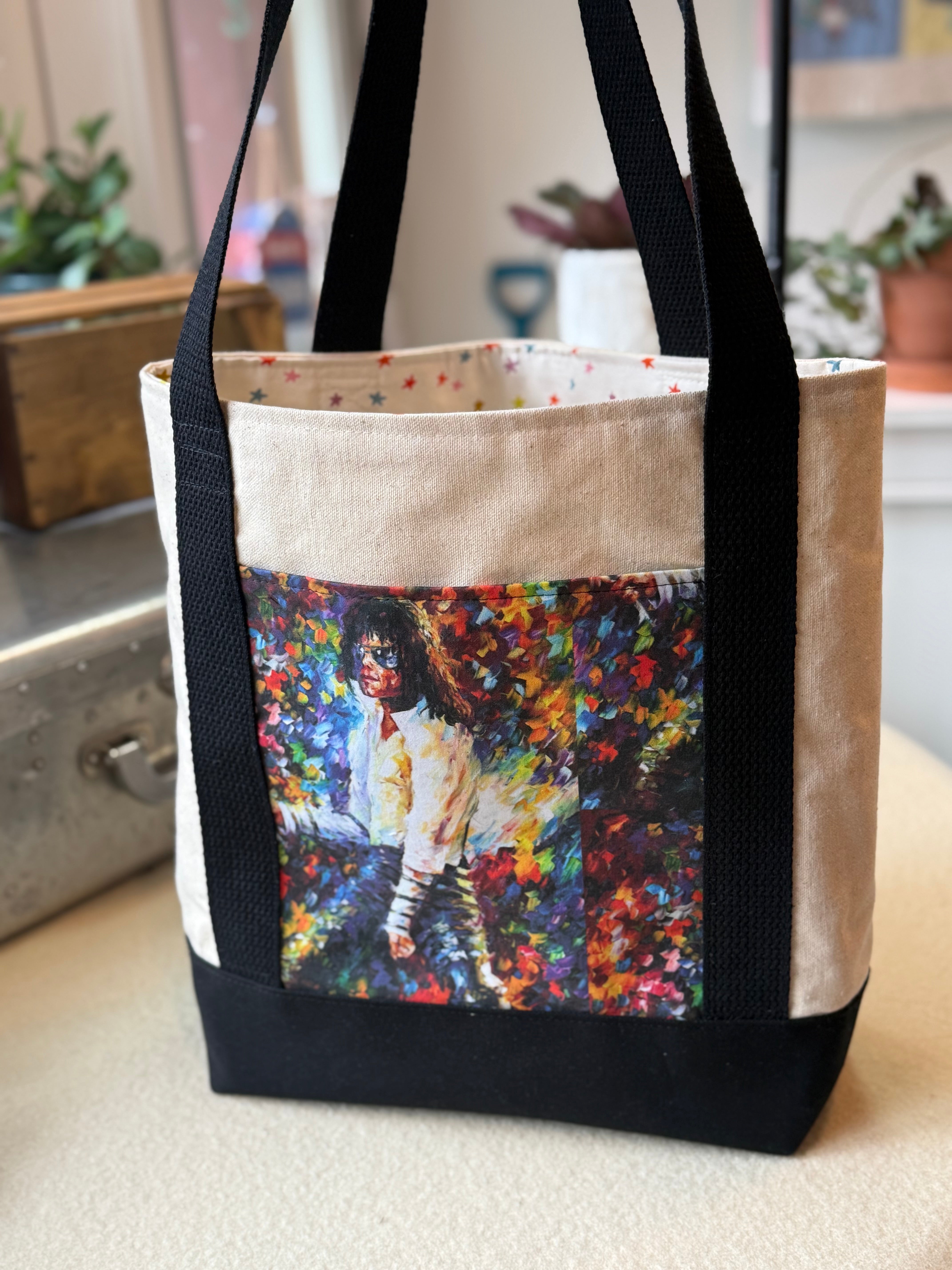 OOAK Michael Jackson Canvas Tote Bag — Handmade Day Bag