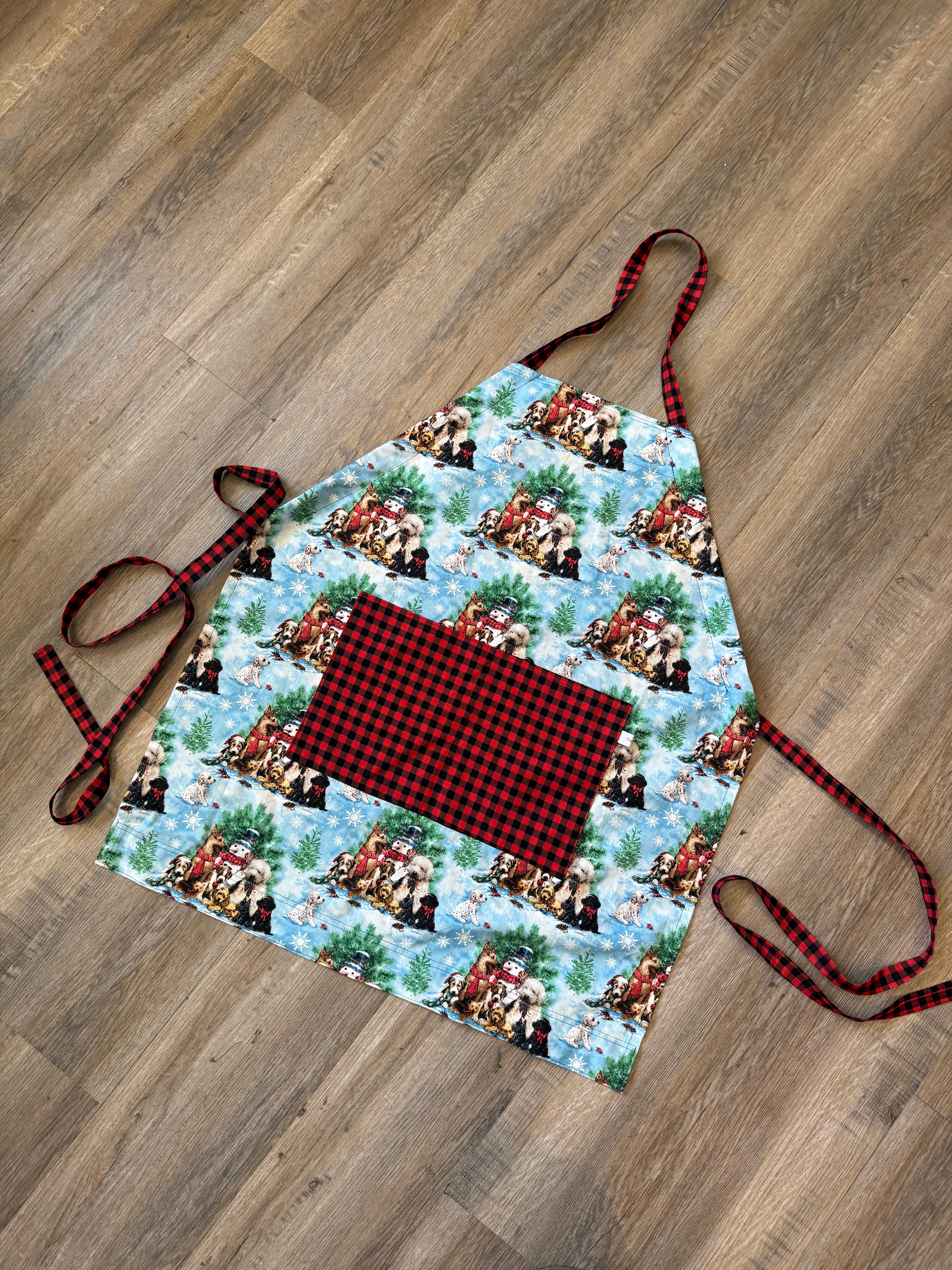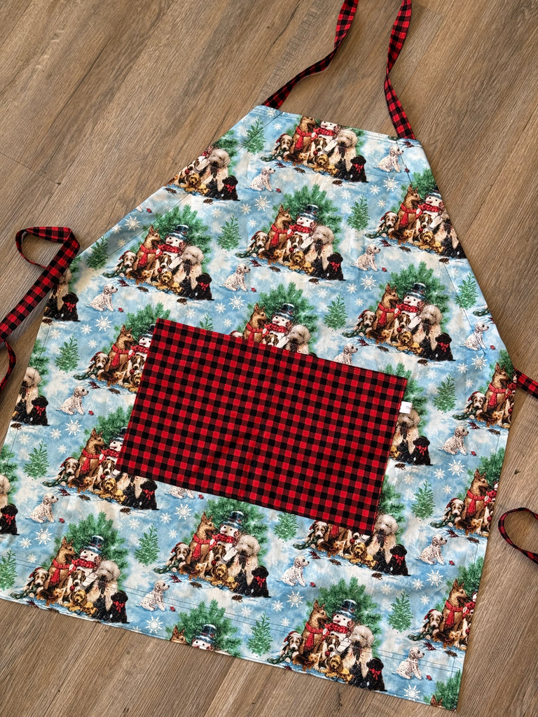 Bring a little festive charm to your kitchen with these Christmas-themed aprons from The Plaid Cow. Each one is made from 100% cotton and designed for both comfort and practicality — featuring a full front for great coverage, two roomy front pockets, and extra-long ties that let you wrap and tie just how you like.