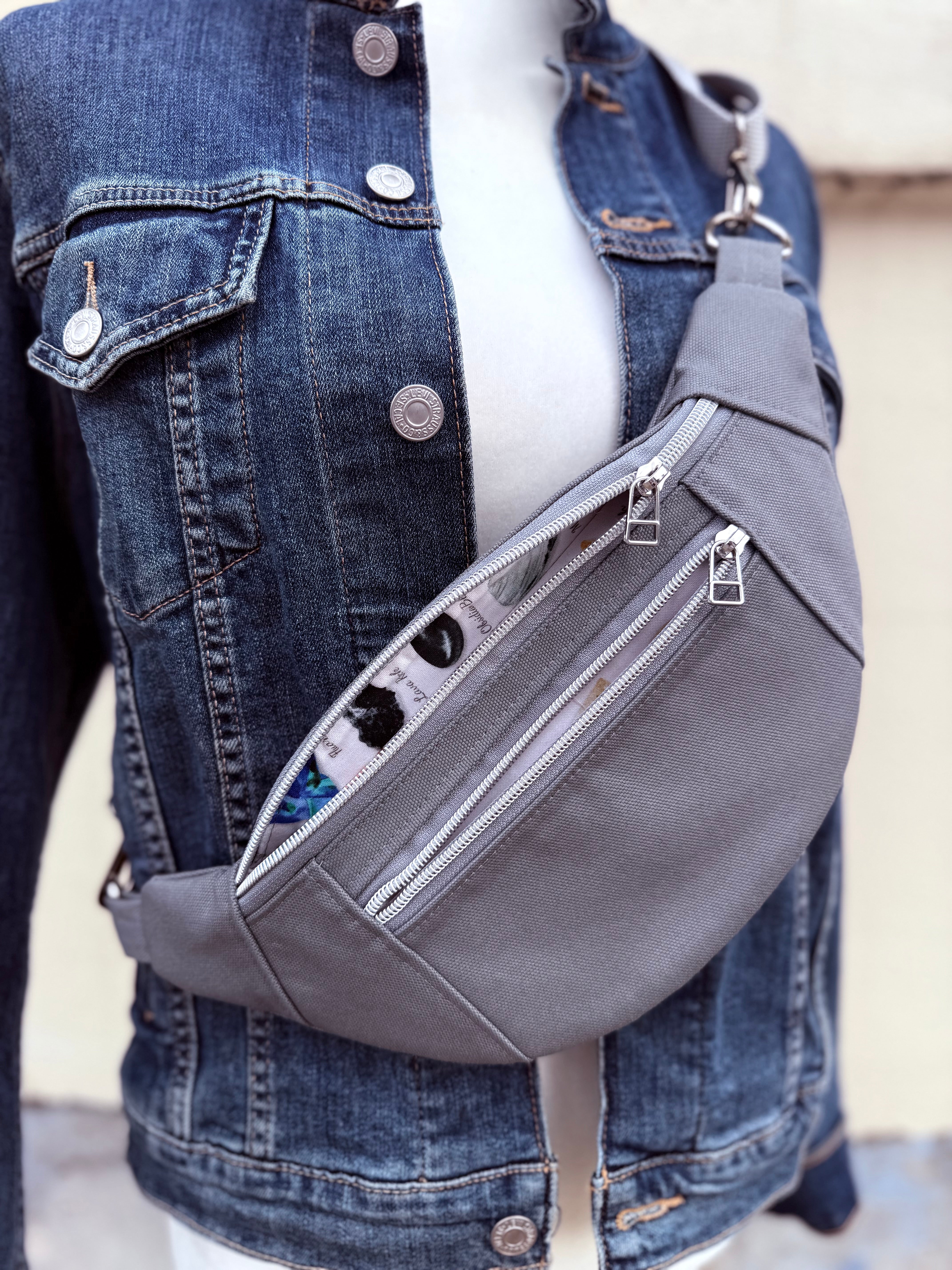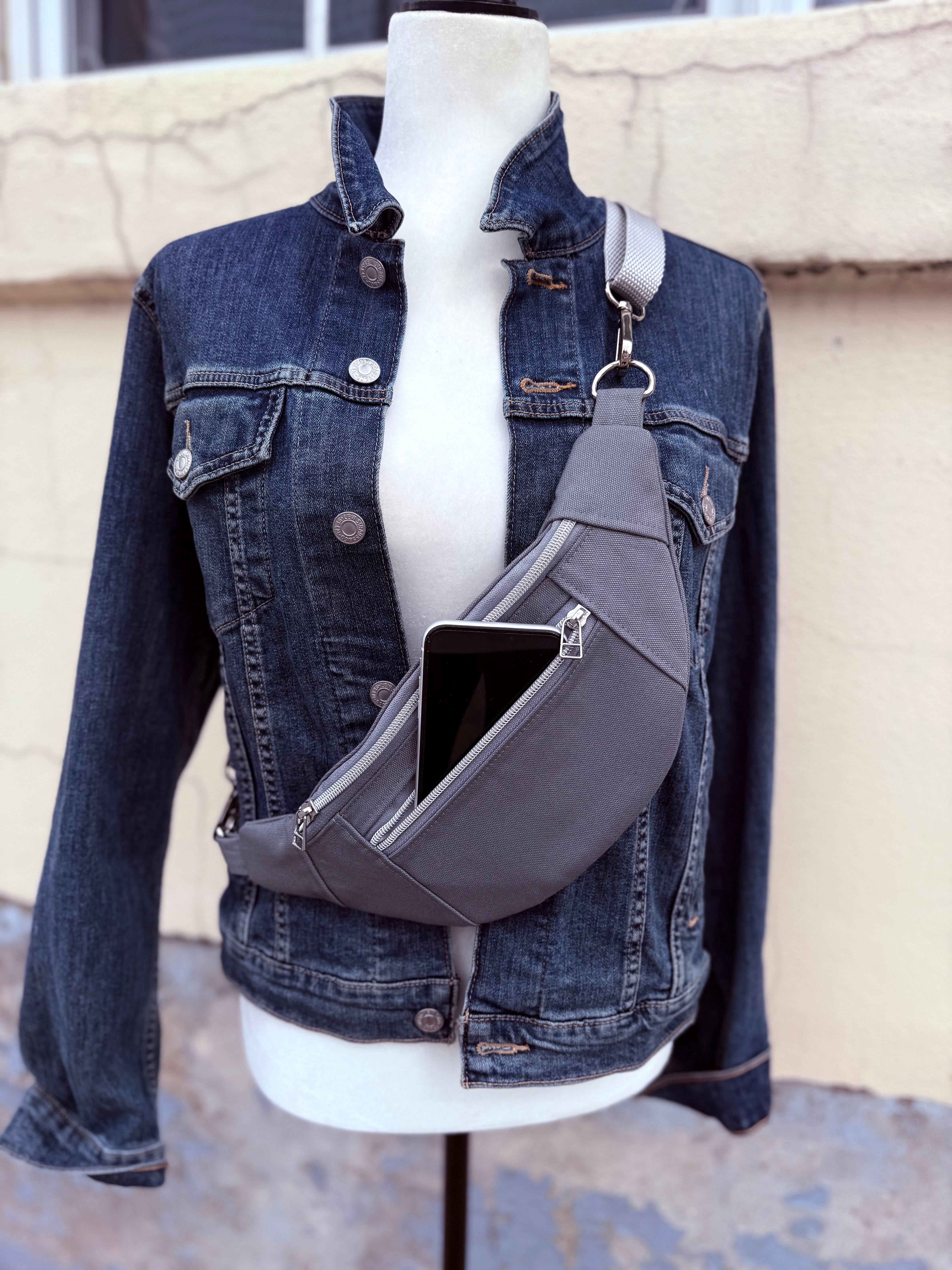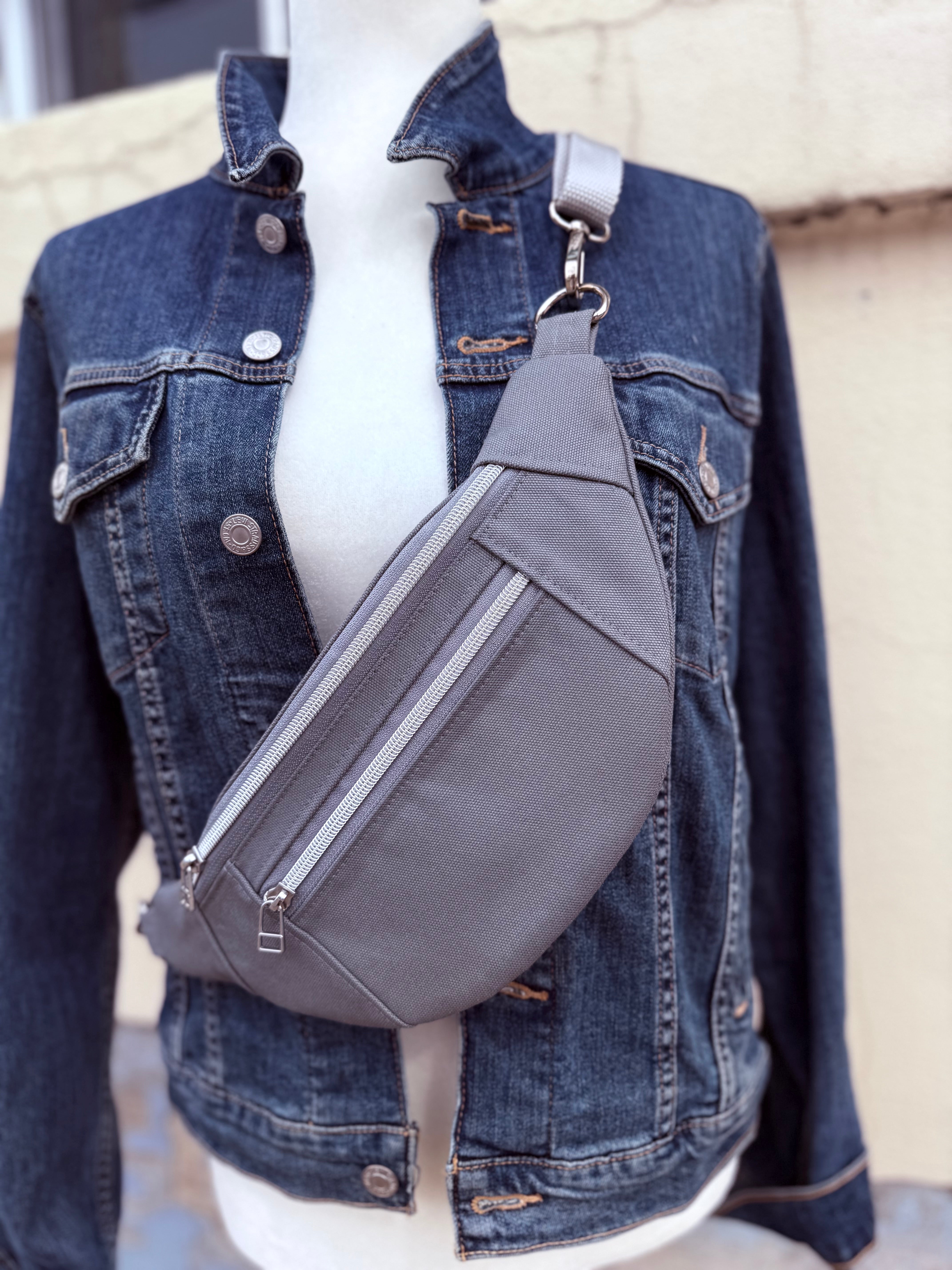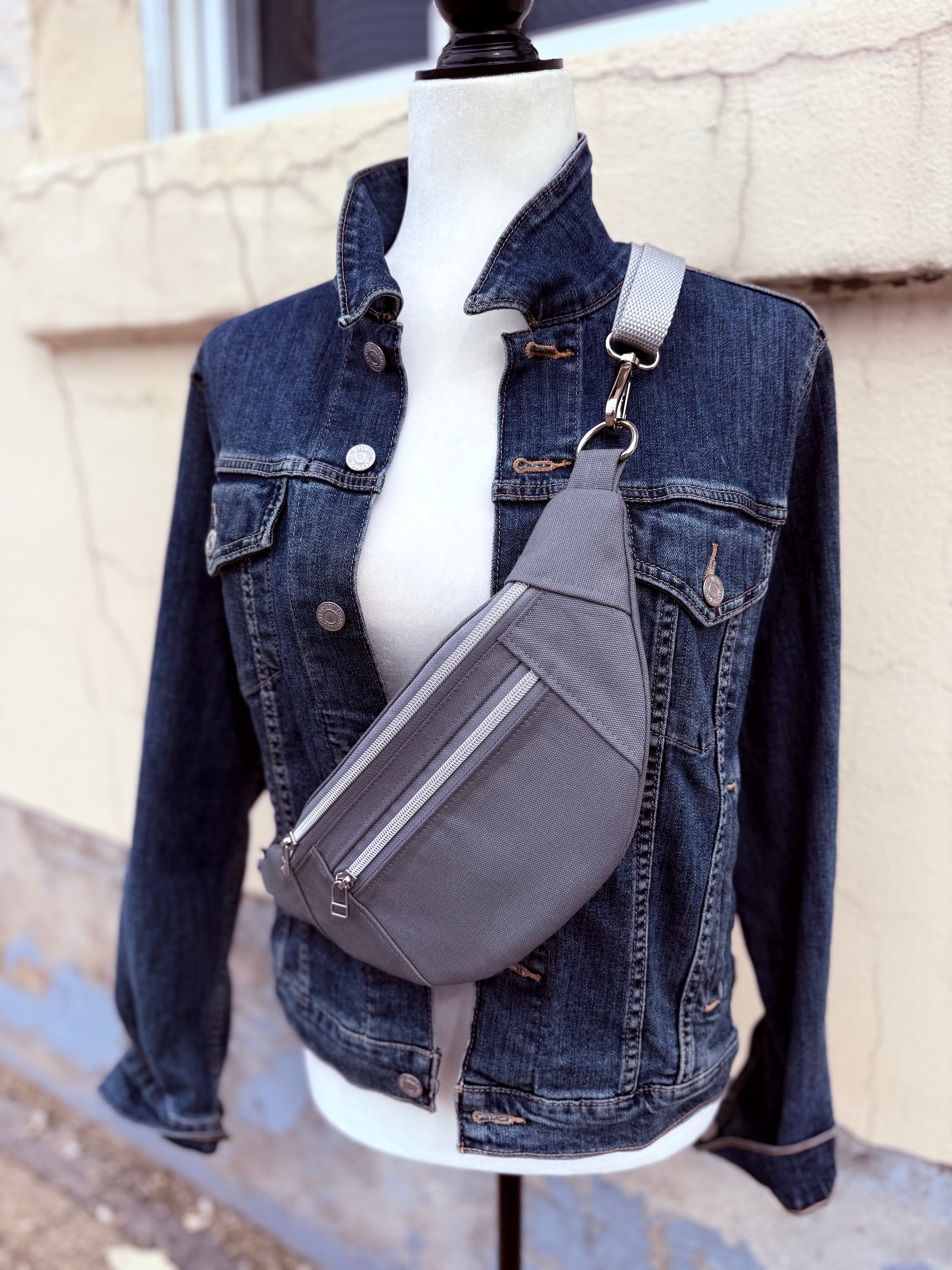 Crossbody Hipster Bag - Medium - Light Grey